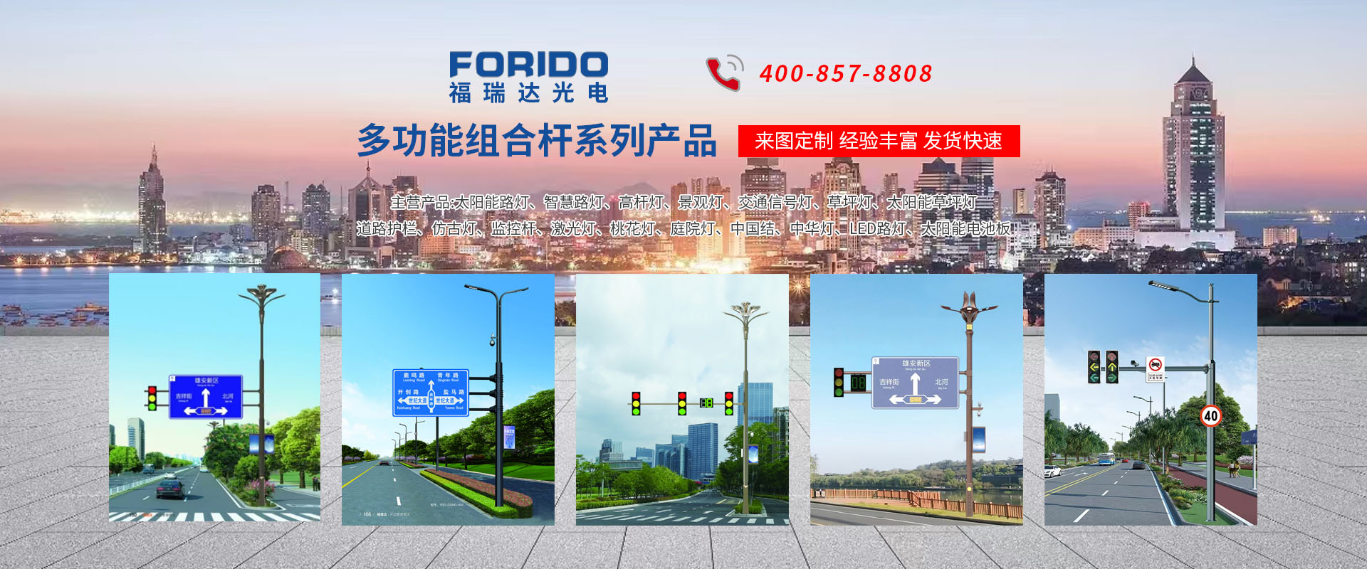 揚州福瑞達光電科技有限公司位于淮左名都歷史文化名城、中國路燈制造基地揚州市北郊菱塘工業(yè)園,公司占地面積76000平方米,注冊資金10518萬元,擁有高級技術嫻熟的員工280多人,擁有大型折彎機、激光切割、數(shù)控注塑機、壓鑄機、自動埋弧焊、氣焊、彩色粉末靜電噴塑等大型自動化設備,我公司是一家集設計、研發(fā)、生產(chǎn)、銷售、施工安裝服務為一體的戶外交通照明產(chǎn)品制造商,主要生產(chǎn)智慧路燈、太陽能路燈、LED路燈、高桿燈、景觀燈、交通信號燈、交通標志牌、通信鐵塔、路跨鋼結構、公交站臺、太陽能光伏組件、景點亮化、樓宇亮化工程的設計施工等。公司秉承開拓創(chuàng)新、銳意進取、精誠服務的企業(yè)精神,堅持以“誠信為本、技術為先、服務是金”的合作理念,我們憑借先進的制造工藝、優(yōu)質(zhì)的產(chǎn)品質(zhì)量、合理的市場價格和完善的售后服務贏得了廣闊的市場和客戶的信賴。  我公司已通過ISO9001質(zhì)量體系認證、ISO14001環(huán)境管理體認證,CQC產(chǎn)品認證,中國節(jié)能產(chǎn)品認證,通過“CCC”強制性產(chǎn)品認證,具有市政總承包,照明,交安,設計等資質(zhì)···